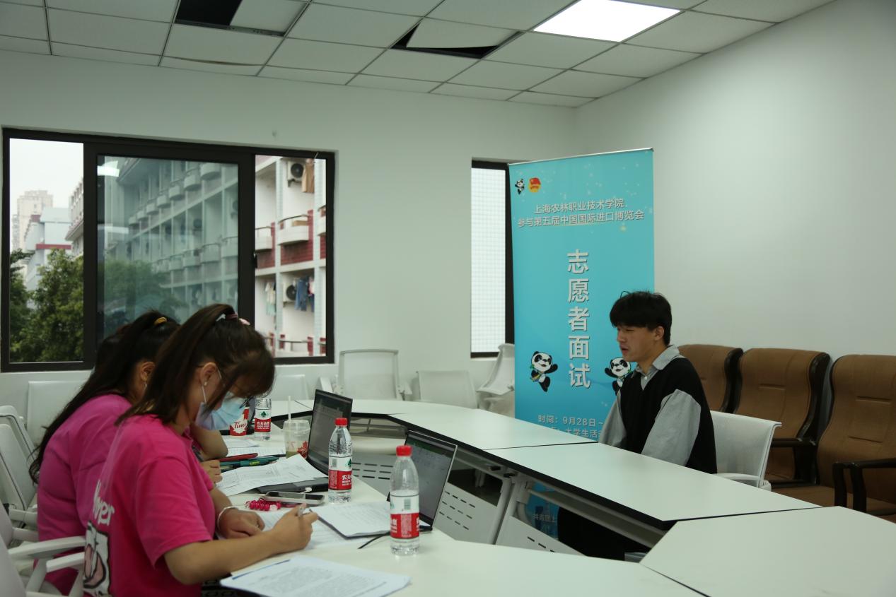 国庆节前后,在大学生活动中心,院团委开展第五届进博会志愿者招募选拔工作,经前期自主申报,共计314名学生报名参加并完成笔试,并以线上线下相结合的方式进行面试,最终录取100名学生。