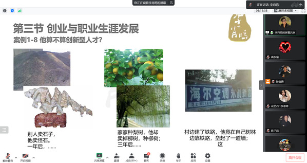 为进一步加强学生创新创业教育,提高学生对创业与未来职业生涯的发展规划,拓展学生创新创业实践能力。10月11日,植科系在线开展“青囊”计划创新创业训练营,特邀李肖鸣教授作为讲座主讲人。植科系党总支书记高东菊及部分教师、2022级新生及2020级中高贯通学生共计300余人在线参加培训。