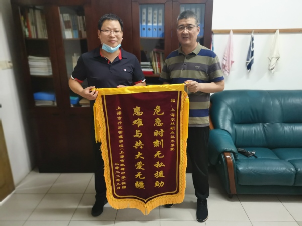 9月30日,上海市行政管理学校后勤科副科长黄涛代表学校将一面写有“危急时刻无私援助,患难与共大爱无疆”的锦旗赠送给学院,以此感谢学院上半年疫情期间为上海市行政管理学校疫情防控紧要关头给予大力支持和无私援助。后勤处、保卫处处长李卫明代表学院接受赠旗。