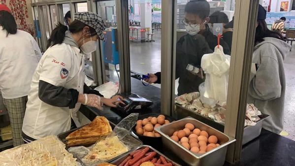 有4位同学在学生食堂一楼上海尧发餐饮管理有限公司参加勤工俭学,主要负责学生食堂早餐售卖和盘点等工作。每天早上5点半,同学们就早早的来到学生食堂后厨,在食堂老师傅的带领下,摘下手上佩戴的饰品并对双手进行卫生清洗,然后换上干净的工作服,带上工作帽和口罩,做好这些准备工作后再按照要求开始工作。女同学清点当天售卖的早餐数量,男同学们则在后厨帮助厨师打下手,然后将制作好的早餐搬送至售卖窗口摆放整齐。每天工作虽然只有两三个小时,时间虽短工作看似简单,但同学们在无形中逐渐提高了自我管理、自我约束的意识。通过自己的劳动,提前积累社会工作经验,培育辛勤劳动的品质。