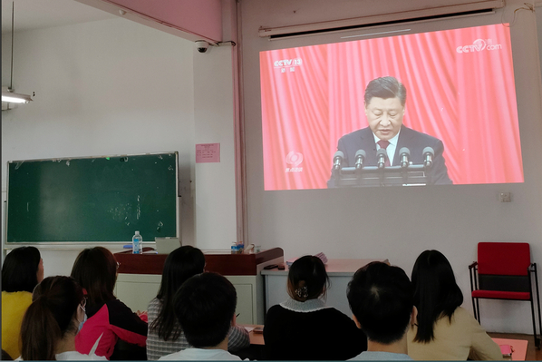 蒋洁说:“党的二十大胜利召开,深受鼓舞,倍感振奋。我们要坚定理想信念,坚持立德树人,坚守思想政治教育阵地,为党育人,为国育才。”辅导员范小雪说:“要以习近平新时代中国特色社会主义思想为指导,深入学习并全面贯彻党的二十大精神,用实际行动做好青年学生的领路人。”质检贯182苏奕宇说:“作为入党积极分子要主动学习党的二十大精神,担负起时代赋予青年的重任,以奋斗擦亮最亮丽的青春底色。”环境202缪穗说:“作为一名大学生,对党和国家取得的巨大成就倍感自豪,对二十大今后五年的宏伟蓝图充满期待,也对美好未来充满信心,我要努力为实现中华民族伟大复兴中国梦而贡献力量。”