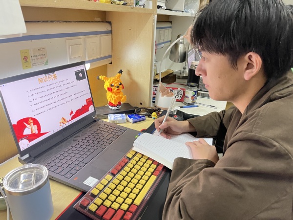 同学们表示,我们青年人生逢其时,也责任在肩,作为社会主义事业的接班人,要坚定不移听党话、跟党走,怀抱梦想、脚踏实地,敢想敢为又善作善成,努力学习专业知识,练就本领,将爱国情转化为报国志、报国行,在青春赛道上争取跑出当代青年最好成绩。