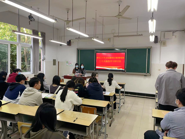 同学们表示,看完党的二十大开幕会,认真学习了党的二十大报告内容后,为新时代中国取得的瞩目成就感到自豪骄傲。同学们围绕所学内容和自身实际交流了学习感悟。