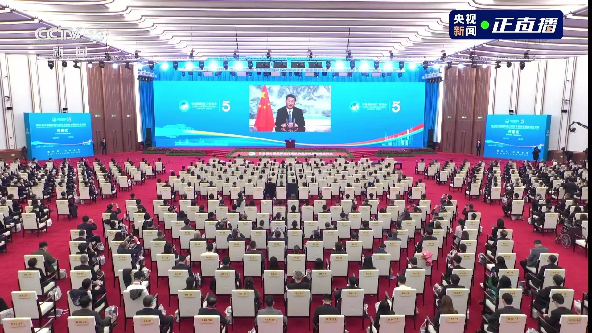 11月4日晚,第五届中国国际进口博览会在上海开幕,国家主席习近平发表视频致辞。