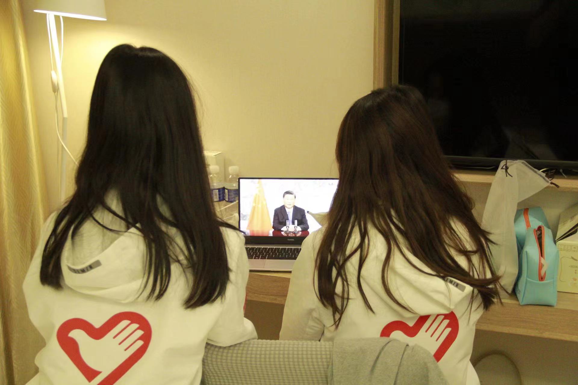 上农二年级“小叶子” 刘畅说道:“在观看学习了习近平主席开幕式上的致辞后,我对进博会志愿者‘小叶子’的身份有了更深刻的理解。第四届进博会我的岗位是0米层接驳车站点秩序维护岗,本届进博会,我的岗位是16米层接驳车站点秩序维护岗,两年的时间,我与进博会同成长,共进步,进博会的实践经历让我对共青团员的责任和使命有了更深刻的认识、更真切的体验。作为新时代青年,我将以昂扬的姿态、饱满的热情、周到的服务,凝心聚力为学校增光、为祖国添彩!向前进,博青春,为进博,一起来!”