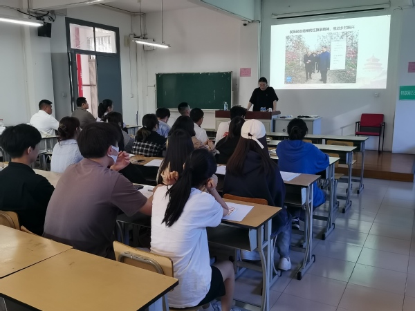 延安是毛泽东思想从形成、发展到成熟的圣地,蕴藏着中国共产党走向胜利的成功密码,是我们克服艰难险阻、践行初心使命的不竭动力。党员发展对象生物202班张舒芯通过视频和主题讲解的形式从延安精神的形成和科学内涵带领同学们走进延安精神、学习延安精神。来自红旗渠的退伍军人、学生党员宋小亮,以“跟随习近平总书记脚步,感悟红旗渠精神永在”与大家作了分享。他从“千年旱魔”林州人民治山治水的历史及60年代党带领林州人民大干10年建设红旗渠的故事,带领同学们深入领会“自力更生、艰苦创业、团结协作、无私奉献”的红旗渠精神。