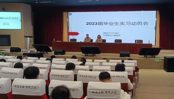 为做好学生顶岗实习的教育工作,引导学生做好顶岗实习,让学生明确顶岗实习的目的、意义,11月10日,在综合楼205报告厅,生药系开展2023届毕业生实习动员会,宣布毕业实习工作实施方案,安排部署毕业实习及实习系统使用等相关事宜。生药系副主任卢洪秀、党总支书记蒋洁、辅导员及全体2023届毕业生参加动员会。