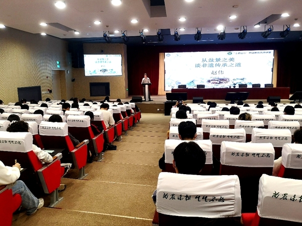 赵伟老师主要围绕盆景之美和盆景制作两方面进行演讲,首先开门见山介绍了盆景是一门活的艺术,蕴含文学和美学,并集植物栽培学、植物形态学、植物生理学及园林艺术和植物造型艺术于一体,是中华民族传统文化的表现形式之一,并图文并茂地阐述盆景的形态美、盆景的意境美和盆景的自然美。为增强讲座效果,赵老师在现场以罗汉松毛坯演示了临水式盆景的制作,讲解了海派盆景造型中植株毛坯选择、盆景设计立意、修剪、蟠扎、造型及上盆等一系列要求和注意事项,让大家深入感受海派盆景非物质文化的独特魅力,并鼓励同学们多参加专业实践,提高审美能力和专业技能,为今后服务城乡夯实基础。
