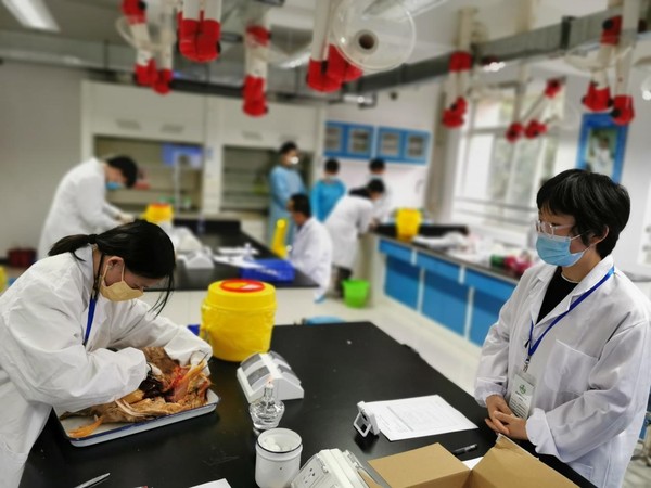 动物疫病防治员鉴定分为理论考试和技能操作两大项。为了做好本次职业技能鉴定工作,动科系多次召开培训协调会和疫情防控专题会,协调安排工作人员,配备充足的考核用活禽、器材和疫苗等。考核过程在国家职业技能鉴定质量督导员的监督下有序进行,考评组严格按照《动物疫病防治员》国家职业标准考核评价考生水平,考评员独立评判考生成绩,统分员根据考评员评分记录统计考生成绩,整个实操考核过程规范严谨。