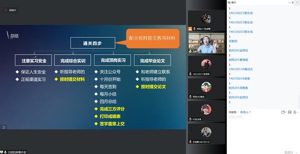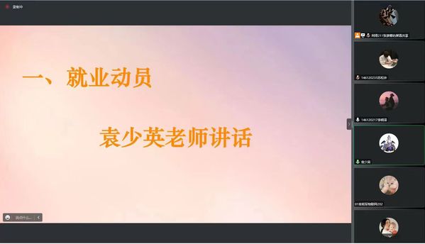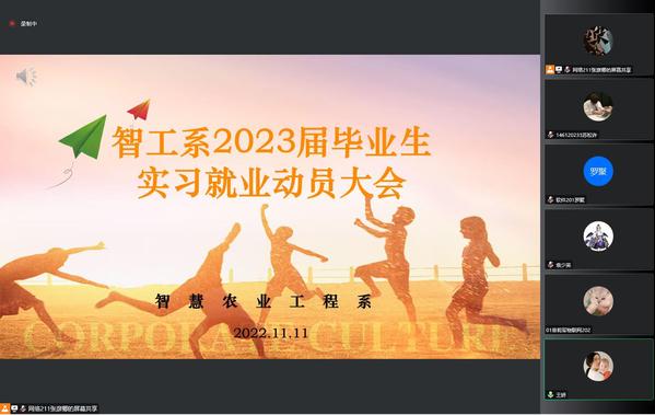 为帮助2023届毕业生更好地了解就业政策,以科学的态度规划职业生涯,化“被动就业”为“主动择业”,11月11日下午,智工系2023届毕业生实习就业动员大会在线举办。智工系学工负责人袁少英、系副主任王妍两位老师及全体2023届毕业生参加本次实习就业动员会。
