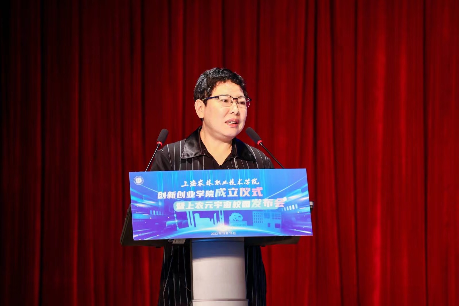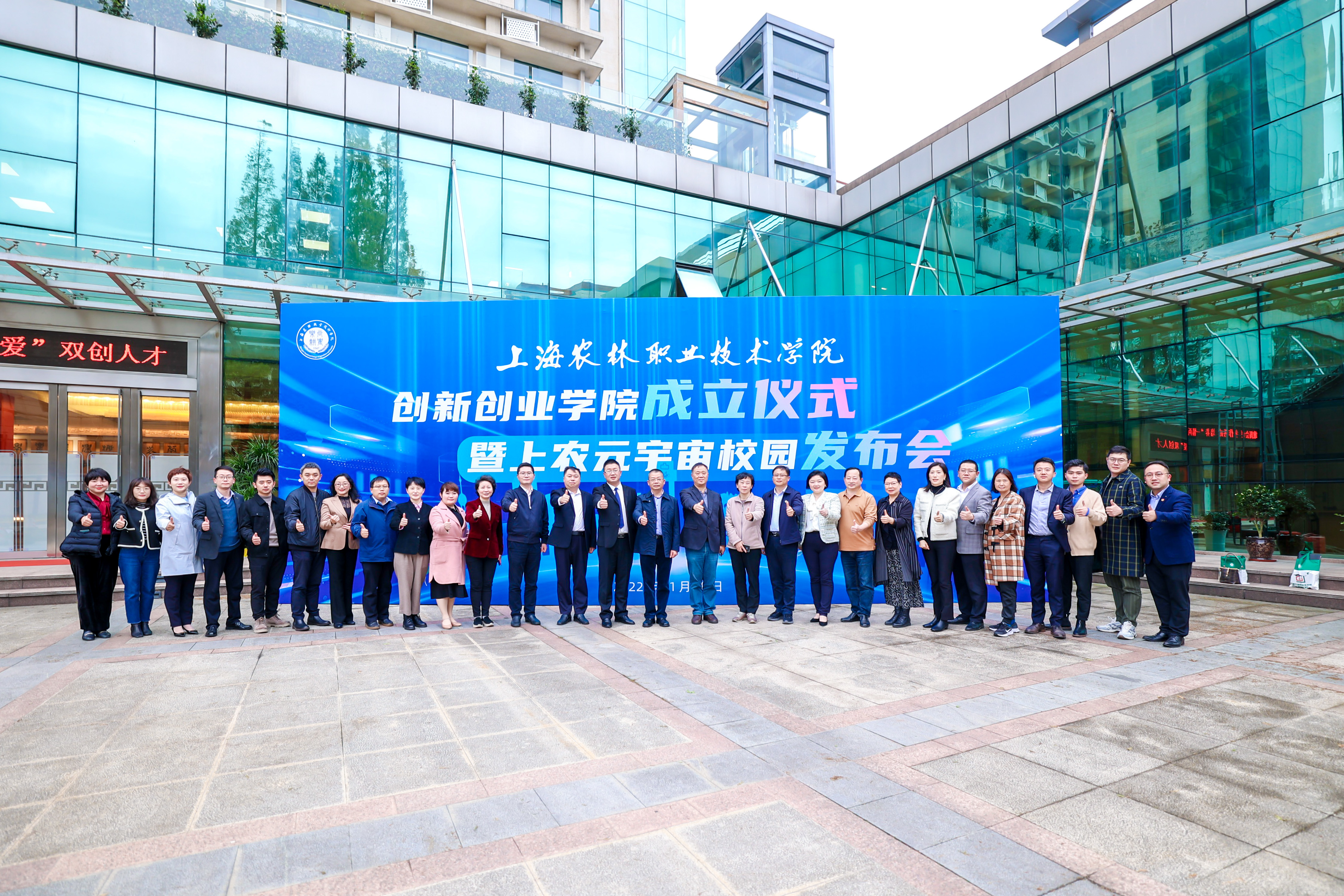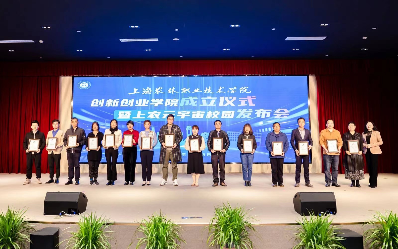 11月18日,在205报告厅,学校举行创新创业学院成立仪式暨上农元宇宙校园发布会,上海市学生事务中心副主任王涛,上海出版印刷高等专科学校党委副书记顾凯,上海城建职业学院党委委员、副院长郭洪涛,上海电子信息职业技术学院副院长方林中,长三角G60科创走廊联席办科创组组长、松江区科创发展办副主任宋苏伟,松江区人社局副局长马守亮,共青团松江区委员会副书记(主持工作)吕明远,上海市就业促进中心创业指导处创业培训科科长王婉芳,上海市高等教育学会高职高专创业教育专业委员会秘书长宋柏红,上海市学生事务中心双创服务部副部长宋琦,松江区就业促进中心副主任彭晓镝以及来自10余所兄弟院校双创工作负责人,校外双创导师代表,孵化企业代表,人民网、青年报等媒体记者和我校党政班子,相关职能部门负责人,党总支书记,团总支书记,双创导师代表,学生代表等参加成立仪式。党委副书记、副院长邵阳主持成立仪式。