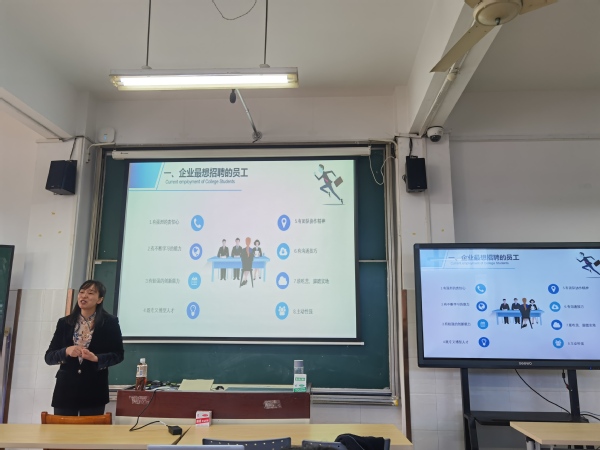 为加强学生对当前就业形势的了解、帮助其认知职业生涯规划、明确职业目标、进一步提升就业意识和竞争力,经济管理系老师们提前谋划、聚焦需求,11月18日下午,邀请了申一检测认证有限公司人力资源部经理、国家二级人力资源管理师朱玲玲作主题为“大学生求职和职业技术发展指导”的就业指导讲座。讲座以线上线下同步的方式进行,经管系近200师生参加。