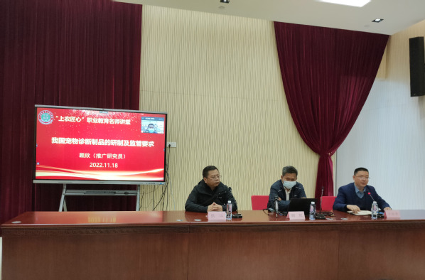 11月18日下午,“上农匠心”职业教育名师讲堂系列专题报告会在206会议室举行。报告会由学院“药物研发与创新大师工作室”首席大师、上海市动物疫病预防控制中心研究员顾欣主讲,报告主题为“我国宠物诊断制品的研制及监管要求”。本期活动由科研处主办、生药系承办,以线上线下同步直播的形式进行。副院长张江、科研处及生药系部分师生共70余人参加。报告会由生药系李何君老师主持。