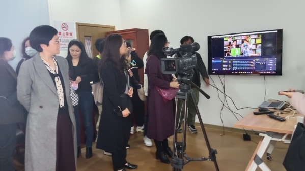 交流之后,王庆华带领教师们参观了“金山味道”视频号的录播场地,赵峰、金鑫介绍了各设备的功能及使用技巧,部分教师现场体验了直播过程,并对相关技术问题进行了学习请教。