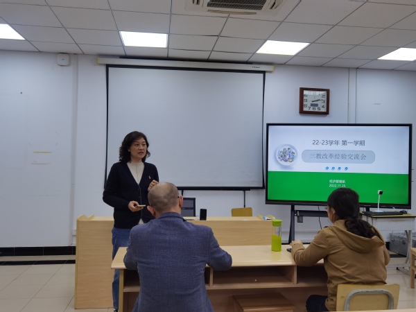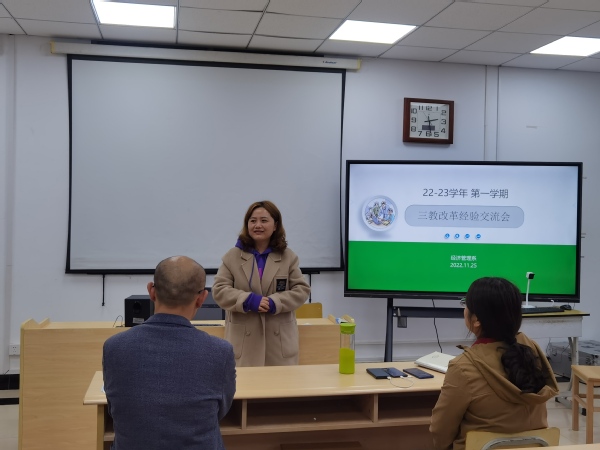 11月25日下午,经管系召开2022-2021学年第二届三教改革经验交流会,系主任高萍、全体教职工参加。