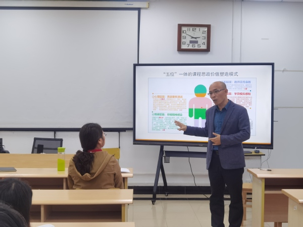 路以兴结合自己的课程思政教学经历,以《五位一体课程思政育人模式探索》为主题分享了自己的课程思政改革经验。认为课程思政应根据学生认知规律分别从教师言传身教、思政案例浸润、学生模拟感知、劳模精神感染、考核制度约束五个层面实现认知层面、心理层面、行为层面、情感层面、保障层面的思政价值塑造。