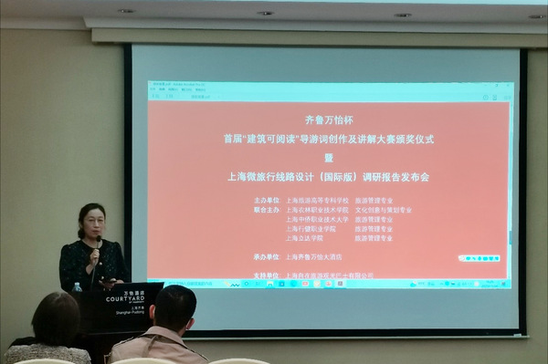 为推动上海旅游文化业发展,注入青年力量,经济管理系文化创意与策划专业同上海多所高职院校联合主办首届上海齐鲁万怡杯“建筑可阅读”导游词创作及讲解大赛。11月26日,在上海齐鲁万怡大酒店举行颁奖仪式暨上海微旅行线路设计(国际版)调研报告发布会。