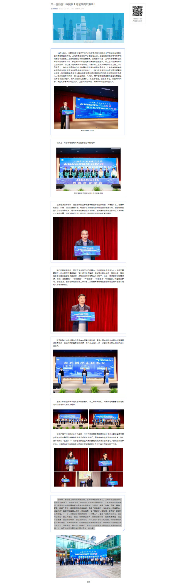 11月24日,“上海高职”公众号报道学院举行创新创业学院成立仪式暨上农元宇宙校园发布会。