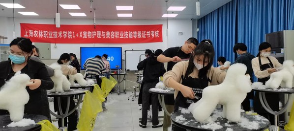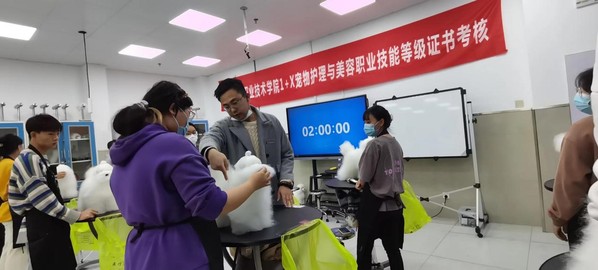 11月27日,宠物护理与美容1+X职业技能等级证书(中级)考核在五厍实训基地宠物美容实训室举行,2020级宠物养护与驯导专业两个班级共32名学生参加考核。动科系副主任滑志民、教师郑敏萍作为考务,1+X证书项目评审组织、名将宠美教育科技有限公司东南片区经理薄杨线上巡考,新云宠物有限公司负责人杨琨作为考评员参与考核。