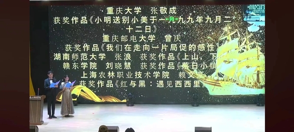 12月3日晚,“中国大学生中文创意诗歌大赛”组委会传来佳音,宠物191班赖文豪同学在全国高手如云的大学生诗人中脱颖而出,夺得优秀奖,成为本赛事40位获奖者之一。