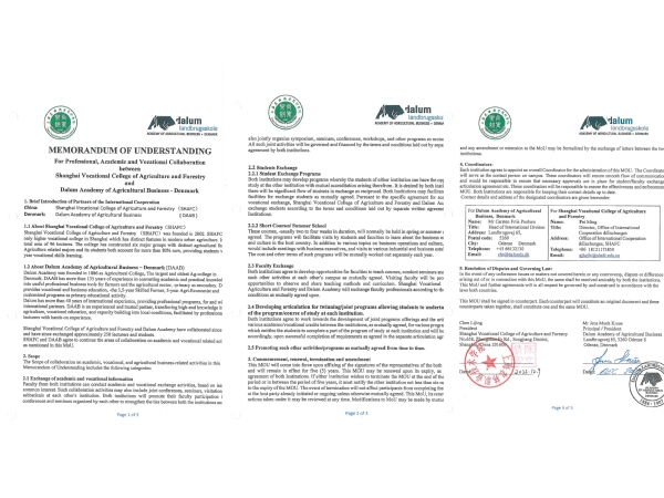 丹麦达拉姆农经学院成立于1886年,原名农学院,是丹麦最大、历史最悠久的农学院。在将学术和实践知识转化为农民和农业部门有用的专业工具方面拥有超过135年的经验。该项目是系部深化与国外相关院校合作的新探索,有利于推进一流专业群建设和拓宽国际视野,有利于提升师生的国际化水平。未来双方将在专业建设、学生培养和学历提升等领域持续深化合作,特别是在中外高本贯通的“3+2”人才培养模式方面将加大合作力度,探索学生学历提升国际化通道,实现学生可持续发展。