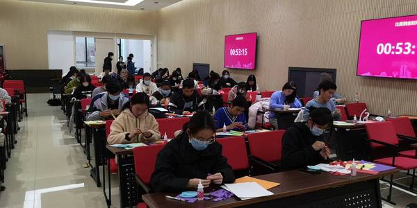 本轮实操选拔赛的命题基于《花艺造型基础》等课程的立体构成设计,要求学生在90分钟内,将不同颜色的手工纸进行修剪、折叠、粘贴等,最终完成一个立体作品,旨在考察学生的立体空间感、创意性、色彩感知及手工制作能力。参赛选手们在了解赛题后,很快展开了天马行空的想象,利用手中的彩纸,创作出一个个富有奇思妙想的立体架构,展示出丰富的想象力和手工技巧。