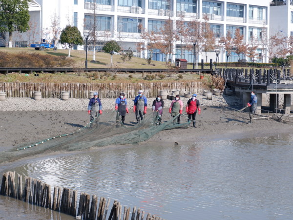 1月4日下午,实训基地全体在岗教职工参与新年首次捕鱼活动。