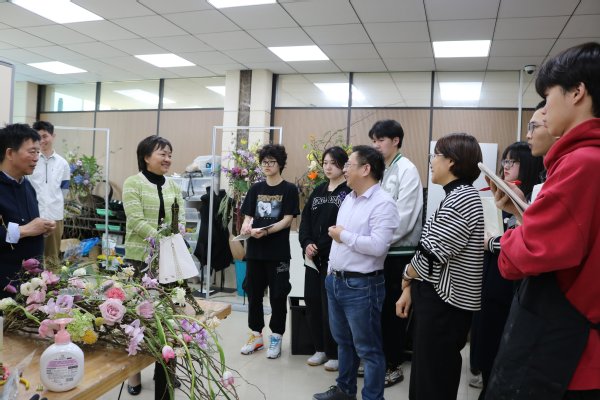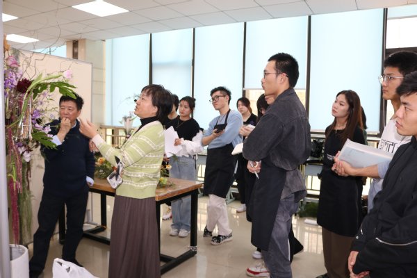 此次训练备受学院领导关注和支持,副院长张江莅临训练现场,同专家、教练和选手亲切交流,激励选手们要继续努力,不断提高自己的花艺技能,并预祝他们在接下去的阶段考核中取得优异成绩。