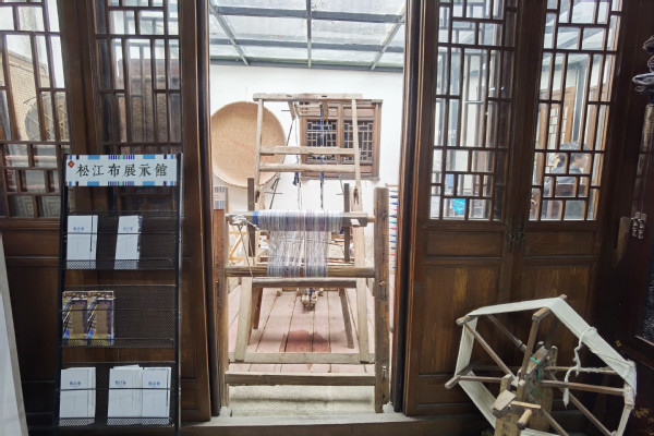 松江布展示馆位于松江区中山西路203号。馆内展示了近代松江棉布、织造工具、嫁妆箱等图文实物资料。通过讲解同学们了解到:元朝初年,松江府乌泥泾人黄道婆,从海南把先进的棉纺织技术带回家乡,对纺织工具进行改进后,使得当时的松江几乎家家纺纱、户户织布,到了明、清两代,松江已成为中国棉纺织业的制造中心。明代宋应星《天工开物》说:“凡棉布寸土皆有,而织造尚松江。”清康熙的《松江府志》也提到:“吾乡所出皆切实用,如绫、布二物,衣被天下,虽苏杭不及也。”