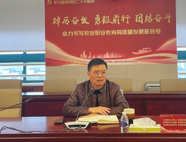 蔡红强调,新常态下基层党建工作,要聚焦主责主业,夯实党建基础,为学院高质量发展凝聚干事创业力量,为学生全面发展蓄力赋能。他提出三点要求:一是抓好党务工作者队伍,凝聚党员干事业。做好经常性常态化培训,提高党务工作者素养,激发党务工作者干事创业激情,选好“种子”育好“苗”,强化干部队伍梯队建设。二是抓好党建与业务深度融合,凝聚群众干事业。找准党建与业务深度融合的结合点、突破口,开创党建工作新模式,形成特色亮点品牌。在职称评聘、学历提升、职业规划等方面多出实招、办实事,多举措关心关爱教师,助力人才成长。三是抓好大学生思想政治工作,培养上农人核心素养。精细化管理,围绕培养核心素养倒逼学生思想政治工作,通过常态化工作促进学生思想政治工作,做到生命安全工作常抓不懈,优秀学生选苗育苗工作持续推进。