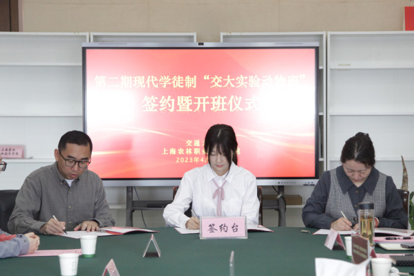 4月18日,第二期现代学徒制“交大实验动物班”签约暨开班仪式在第四会议室举行。院长陈立婧出席,上海交通大学实验动物科学部主任李垚、实验动物科学部办公室主任周晶、学院相关部门负责人、教师代表和第二期“交大实验动物班”全体学生参加。校企合作办主任吴辉兴主持开班仪式。