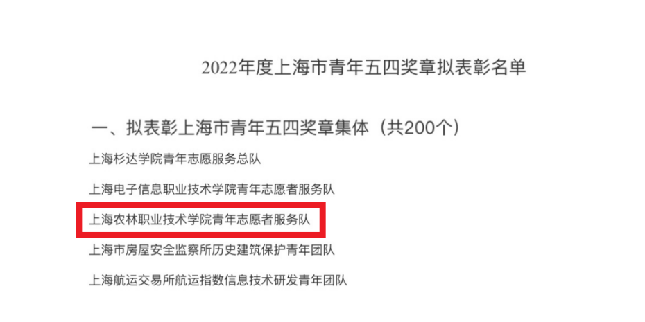 近日,2022年度上海市青年五四奖章集体(个人)评选结果揭晓,学院青年志愿者服务队荣获2022年度上海市青年五四奖章集体荣誉。