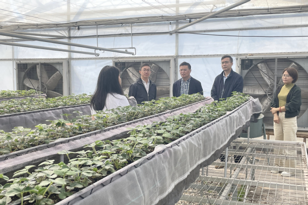 蔡红一行在郏惠彪的陪同下参观了组培室、草莓育苗大棚、作物种植大棚以及种子生产车间,实地了解育种、制种、推广一体化的生产过程。