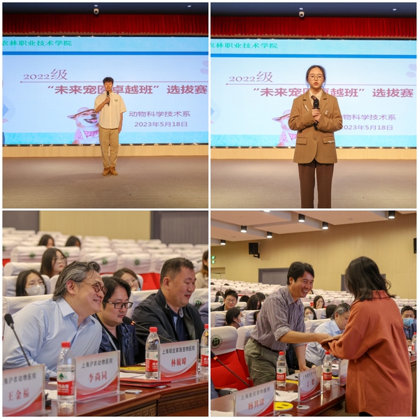 5月18日晚,2022级“未来宠医卓越班”选拔赛在205报告厅举行。院长陈立婧、上海爱侣宠物医院、上海沪农动物医院、上海顽皮家族宠物医院、上海派菲尔德宠物医院、上海萌兽医馆、上海瑞鹏宠物医院六家企业的十位导师出席,教务处处长王欢、校企合作办主任吴辉兴、党委宣传部负责人司维,动科系主任滑志民、专任教师及2022级辅导员、2021级学生代表、32名卓越班候选人、一百余名学生参加。选拔赛由李天顺老师主持。