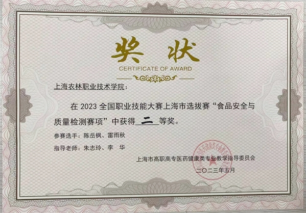 5月19日,全国职业技能大赛食品安全与质量检测竞赛上海选拔赛在上海城建职业学院举办,比赛分为“亚硝酸盐的测定”和“菌落总数的测定”两个模块,由生药系副主任徐莉带队,环境211班雷雨秋和陈岳枫两位同学代表学院参赛,经过激烈比拼,斩获二等奖并入围国赛。