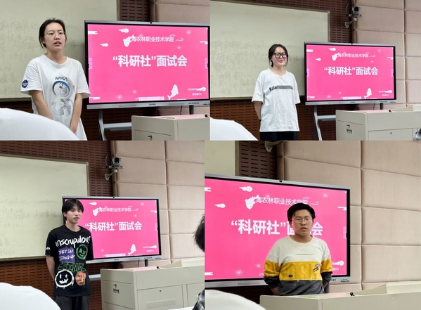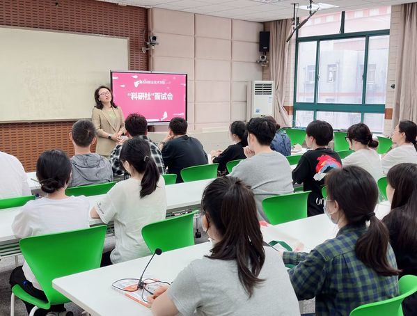 本次面试考官由科研团队负责人及成员组成,17名学生先进行了个人面试,随后分成两组,采取个人陈述和考官提问相结合的方式进行。学生们准备充分,应对自如,表达了对“科研社”的憧憬和向往。