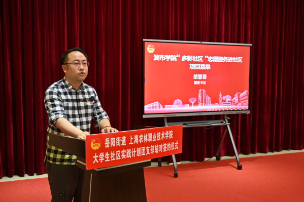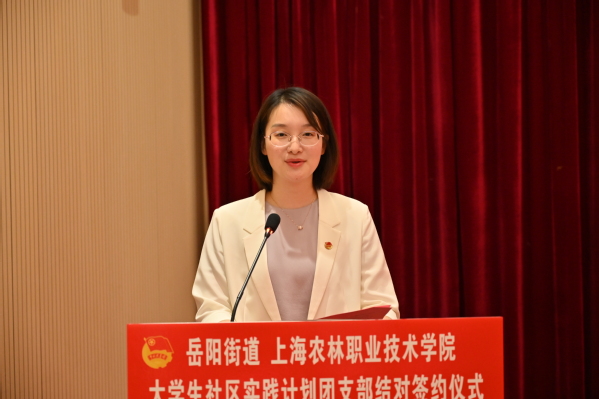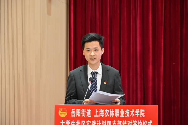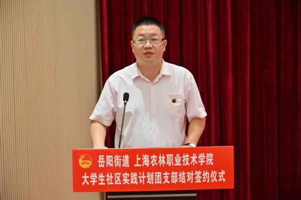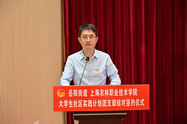 陈帅立在致辞中表示,学院与岳阳街道在深化推进社区实践工作上走在全区前列,此次开展结对,在全区层面具有较强的示范引领作用,实现了校地双向“全覆盖”和“强赋能”。希望学院与岳阳街道各级团组织要全力支持校地结对共建工作,成为党的青年工作的可靠力量;校地共建要成为凝聚青年的平台、服务青年发展的舞台、竞相奋发的擂台;广大团员青年要砥砺奋斗,在社会治理中贡献青春才智。