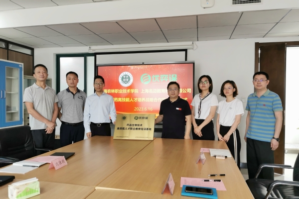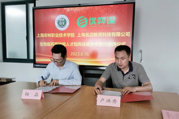 签约仪式上,张江和杨磊共同为药品生物技术高技能人才联合教育培训基地揭牌。张江表示,希望能够充分借助行业企业的力量,不断提高生物医药人才培养质量;加强师资队伍建设,紧扣职业教育发展方向和目标,紧跟区域发展战略规划和要求,不断拓宽职业教育发展路径,提高职业教育教育质量,提升学院社会服务水平;希望双方在教育培训、课程建设、教学资源开发等方面能够通力合作,共同推动生物医药高技能人才培养走上新台阶。杨磊表示,将秉承公司努力成为专业知识的制造者、职业教育的引领者的发展愿景,与上海农林学院共同打造生物医药高技能人才培养的新平台和新模式。