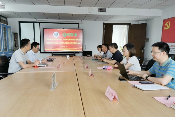 6月16日,学院与上海名迈教育科技有限公司签订生物医药高技能人才培养战略合作协议,签约授牌仪式在综合楼701会议室举行,副院长张江出席,生药系党总支书记蒋洁、生药系副主任徐莉,上海名迈教育科技有限公司总经理杨磊、技术总监丁子承等参加。生药系主任卢洪秀主持会议。