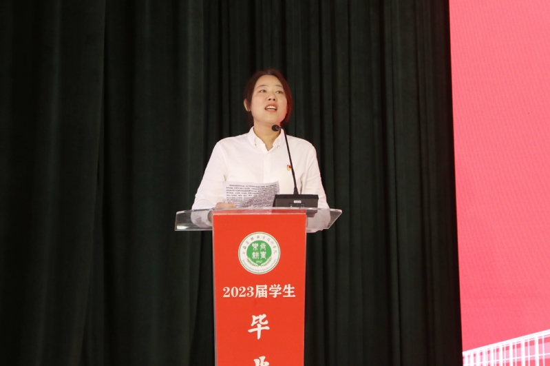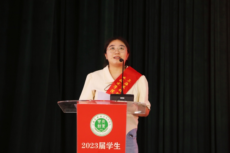 教师代表、马克思主义学院王继红老师希望同学们用真诚奉献去诠释青年一代的责任担当,不忘母校深情,在未来征途中厚植家国情怀,涵养进取品格,做一个幸福的人;辅导员代表、植物科学技术系孔德颖老师希望大家勤于学习,踏实做人,永远保持乐观豁达的人生态度,锻炼承受能力,从容迎接挑战,立志做有理想、敢担当、能吃苦、肯奋斗的新时代上农好青年;优秀毕业生代表、质检(中高贯通)182班刘庆雪在发言中回忆了求学路上深刻经历和美好时光,表达了对母校、老师的感谢,以及对未来的期待与展望。