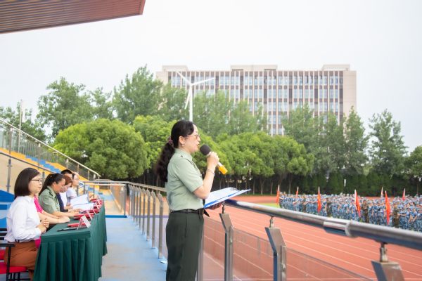 陈立婧作总结讲话,向圆满完成军训任务的同学们表示热烈祝贺,对承训教官们表示衷心感谢,向全体带训教师和后勤保障人员致以诚挚的问候。无军训、不成才,无迷彩、不青春,本次军训不仅锻炼了同学们的身体素质、组织纪律,同时也进行了意志、毅力、集体主义、团结协作、行为规范的教育。鼓励同学们以此次军训为起点,继承和发扬军人的优良传统和作风,弘扬爱国主义精神,在学校、家庭、社会中能自觉巩固军训成果,奋发有为,勇毅前行,在民族复兴的伟大征程中书写精彩人生。
