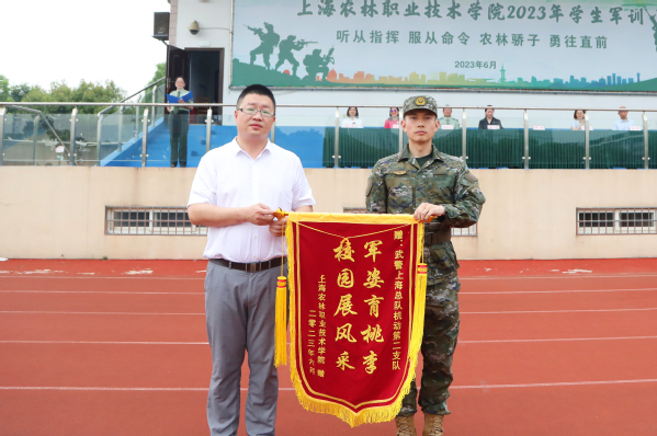 邵阳向承训单位赠送锦旗,宣读在军训中表现优异的先进集体和个人名单。此次军训共评选出6个列队训练先进连、5个射击比赛先进连、6个内务先进连,以及65位优秀营员、14位最佳标兵、4位宣传先进个人、7位优秀教官、6位优秀参训教师和20名神枪手。