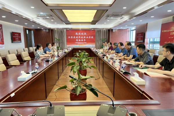 7月9日,江苏农牧科技职业学院党委副书记、校长朱善元一行来校交流。副院长张江出席。