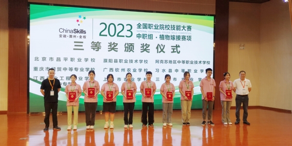 7月11日-13日,2023年全国职业院校技能大赛(中职组)“植物嫁接”赛项在安徽滁州应用技术学校举行,来自全国60支代表队的60位选手参赛。经过激烈角逐,我校植科系园艺(中高贯通)212班的蒋雨馨荣获三等奖。