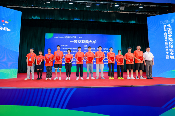 2023年全国职业院校技能大赛高职组园林景观设计与施工赛项为团体项目,包含园林景观设计与园林景观施工两个工作任务, 2位设计选手和2位施工选手,根据任务分工完成一件园林景观作品。经过2天的激烈角逐,共有上海农林职业技术学院等6支队伍获得一等奖;台州科技职业学院等11支队伍获得二等奖;杨凌职业技术学院等17支队伍获得三等奖,上海农林职业技术学院等6支队伍的12位教师获优秀指导教师。