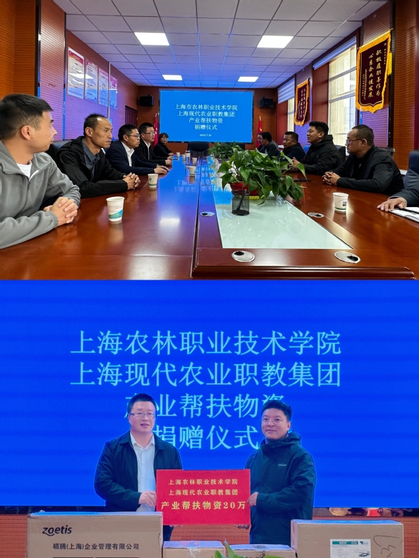上海农林职业技术学院与上海现代农业职教集团企业为果洛州农牧局捐赠动物药品、草莓苗、智能种植机等20万元生产物资。