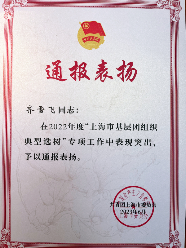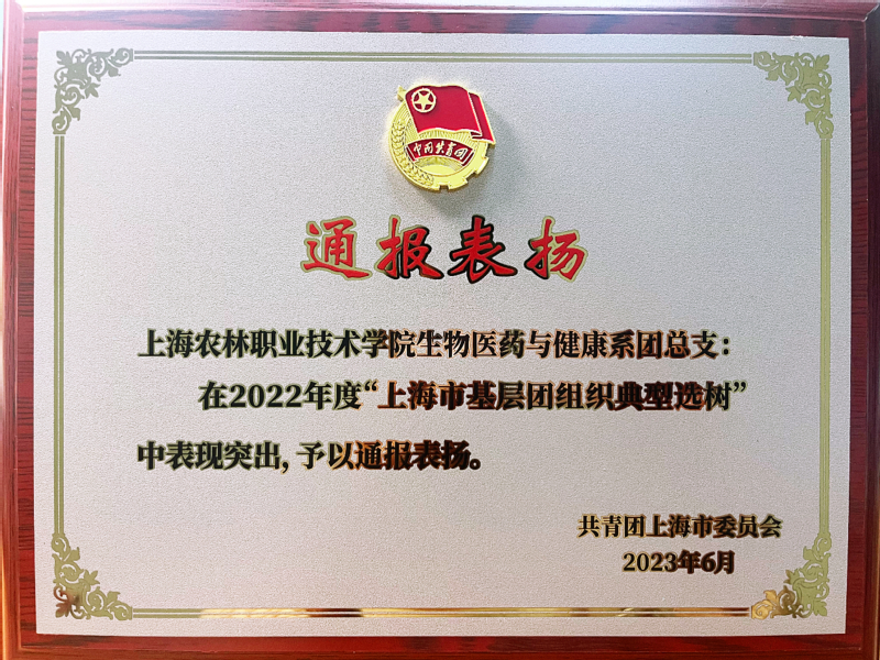近日,共青团上海市委公布2022年度“上海市基层团组织典型选树”结果,生物医药与健康系团总支在该专项工作中表现突出荣获通报表扬。“上海市基层团组织典型选树”是“上海市五四红旗团组织”争创活动的优化调整,是团市委授予本市基层团组织的最高荣誉。