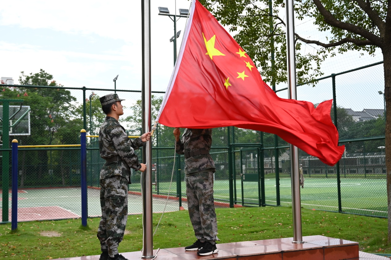 上午8时,国旗护卫队迈着整齐矫健的步伐,护送国旗行进至升旗台,在雄壮的国歌声中,擎旗手振臂一挥,鲜艳的五星红旗顺势展开,冉冉升起,在场师生注目凝视,表达着对伟大祖国的无限敬意和深深祝福。