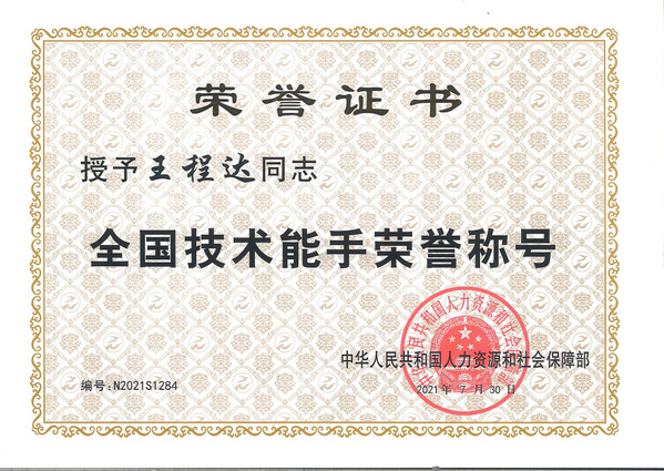 人力资源社会保障部发布文件《人力资源社会保障部关于授予2019-2020年度职业技能竞赛优秀选手全国技术能手称号的决定》(人社部函〔2021〕99号),我院动科系2016级毕业生王程达被授予“全国技术能手”荣誉称号。