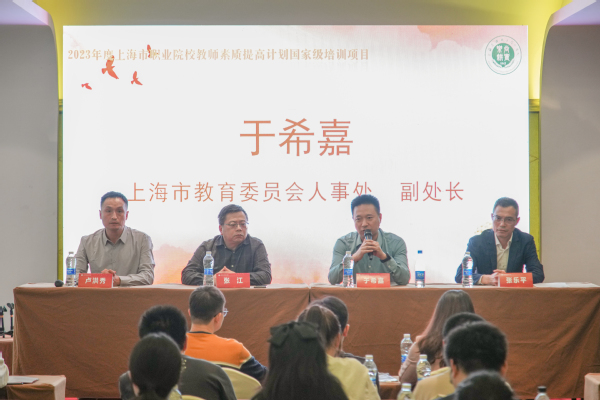 为深入贯彻落实《高等学校课程思政建设指导纲要》重要文件精神,全面推进高校课程思政建设,落实立德树人根本任务,深化教育教学改革,充分挖掘各类课程思政资源,发挥好每门课程的育人作用,进一步提高高职院校教师课程思政设计和实施能力,10月17日,“农业与生物类专业教师教育教学能力提升项目-第二期专业课程思政设计与实施能力提升研修班”开班。上海市教育委员会人事处副处长于希嘉、学院副院长张江出席开班仪式,人事处处长张乐平、来自上海中职、高职和本科高职院校的70余名学员参加培训。开班仪式由生物医药与健康系主任卢洪秀主持。